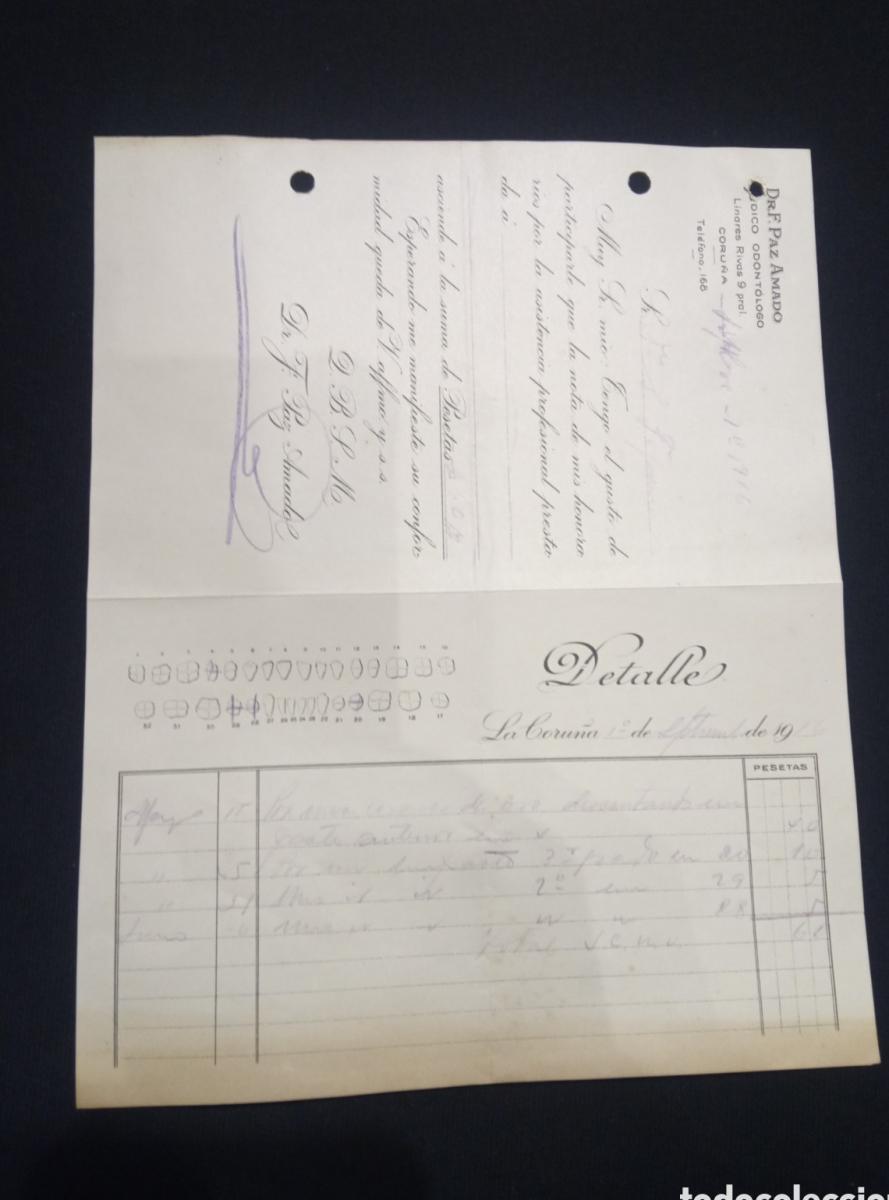 FACTURA PAZ AMADO. ODONTOLOGO. 1916. LA CORUÑA