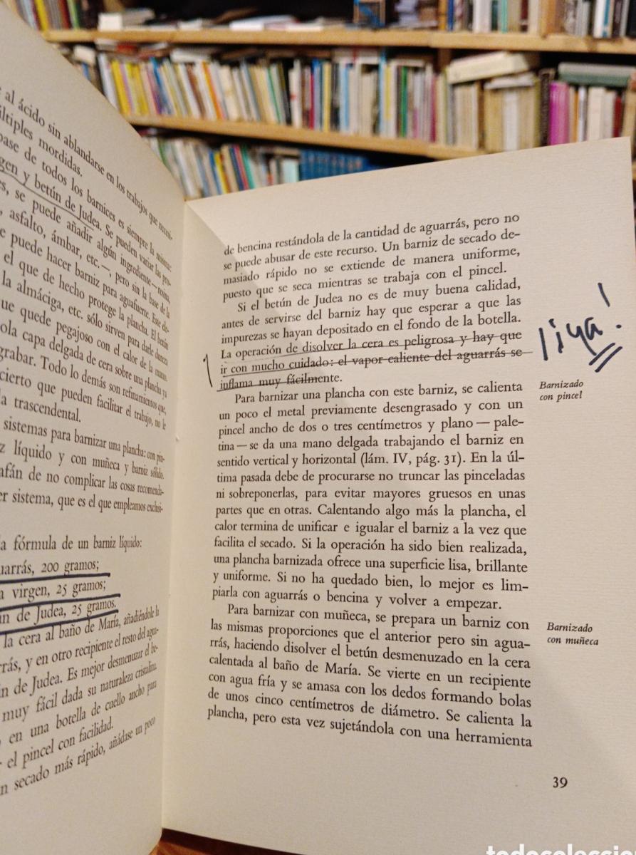 Patiño, Ilustracións a man sobre libro anotado de técnicas de grabado